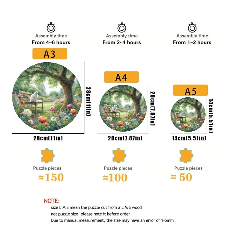 28x28 cm (papel A3) - a complexidade média das peças é de 10 anos +