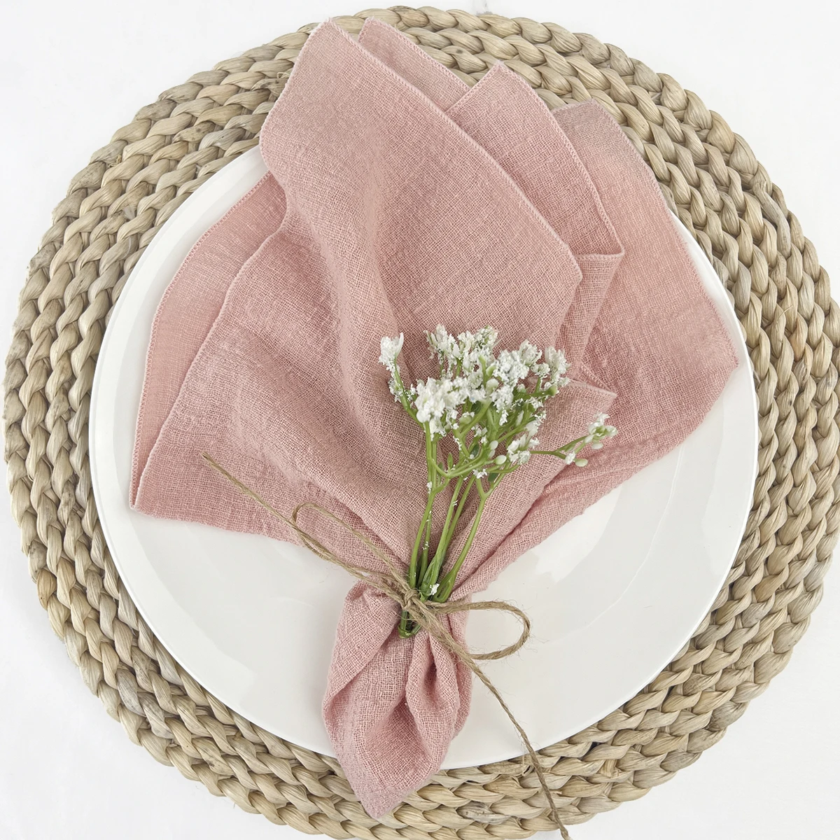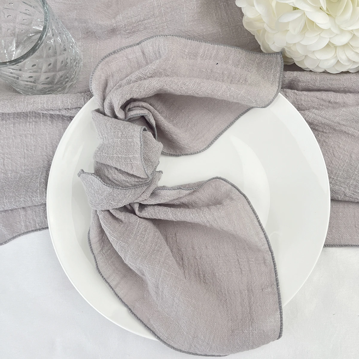 2: Estilo de guardanapos: Borda de guardanapos de pano de costura, esses guardanapos de gaze de casamento são perfeitos para decorar seu casamento em estilo arústico ou boho.
