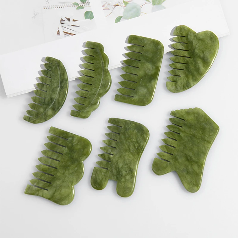 Pente de jade natural gua sha placa massageador de jade para spa acupuntura corpo raspagem guache raspador pele facial ferramenta beleza